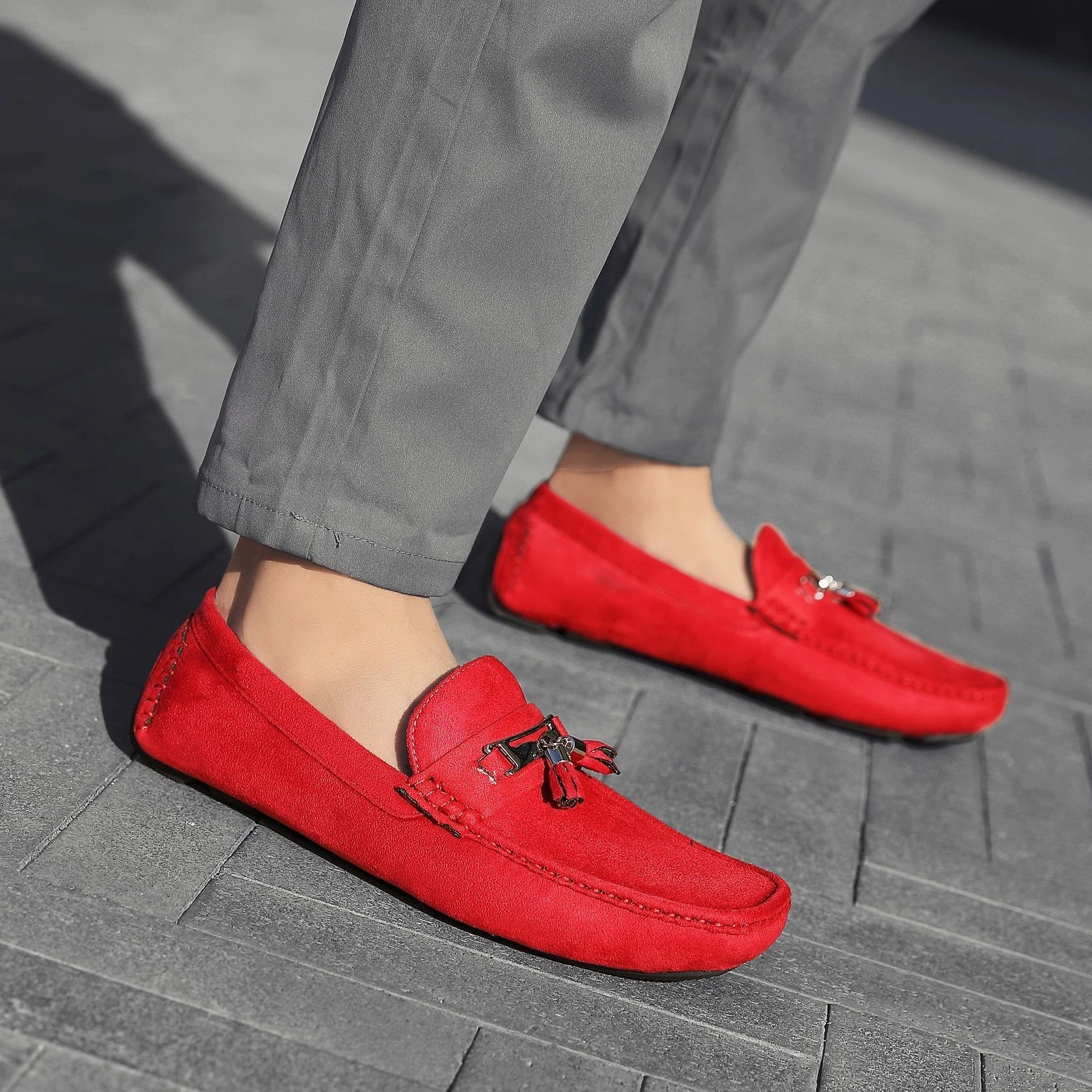 Indulge in a daring sense of fashion with these eye-catching mens driving moccasins, waiting in your cart. Our expert product specialists are ready to assist, from finding your ideal style to receiving a free $15. Don't miss out on our other incredible styles. Shipping is free for orders over $75, so include these alluring mens red moccasins with tassels in your collection and elevate your wardrobe now!