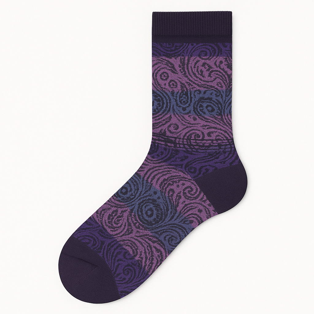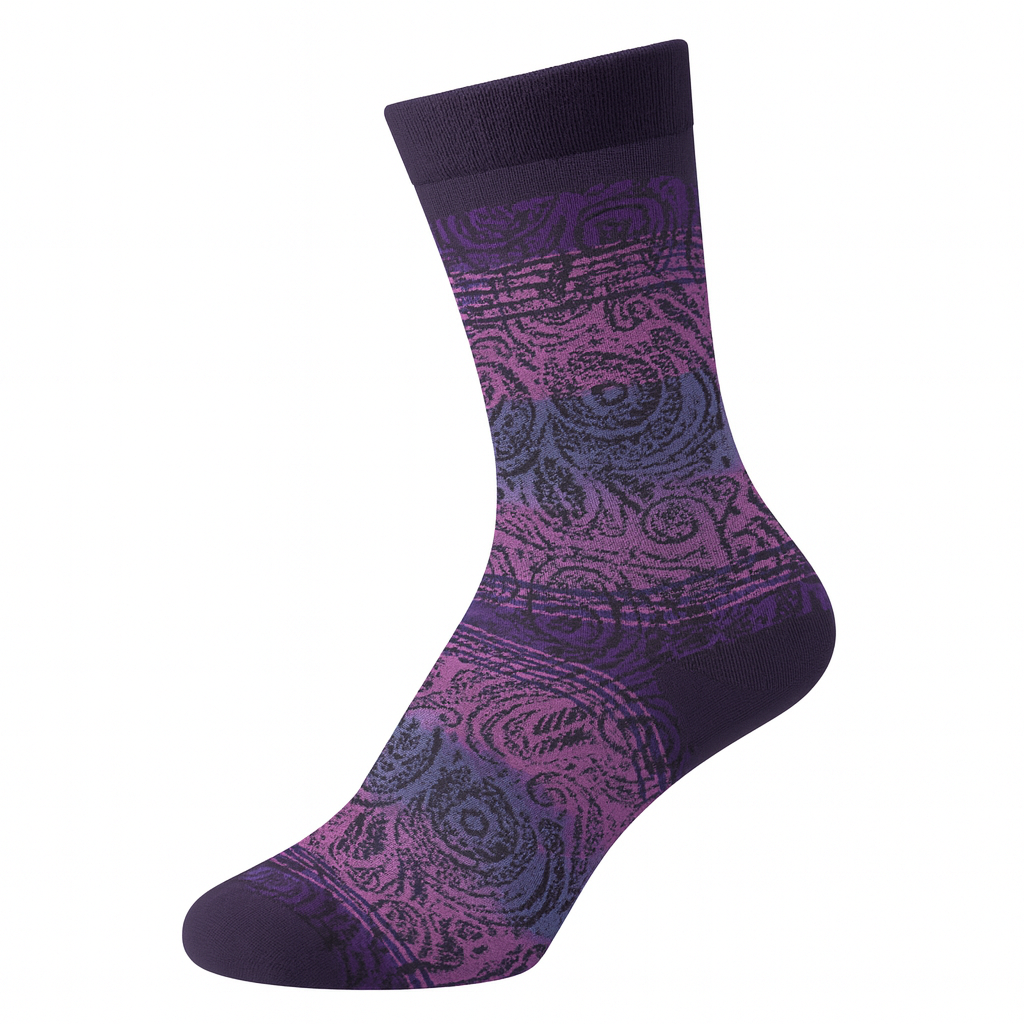Elevate your style with these men's purple paisley dress socks. Crafted to add a subtle yet sophisticated touch to any outfit, they combine classic elegance with everyday comfort. Perfect for both formal occasions and office wear, these socks ensure you stand out with refined detail without compromising on fit or durability. Step confidently into your day with timeless paisley patterns that enhance your look effortlessly.