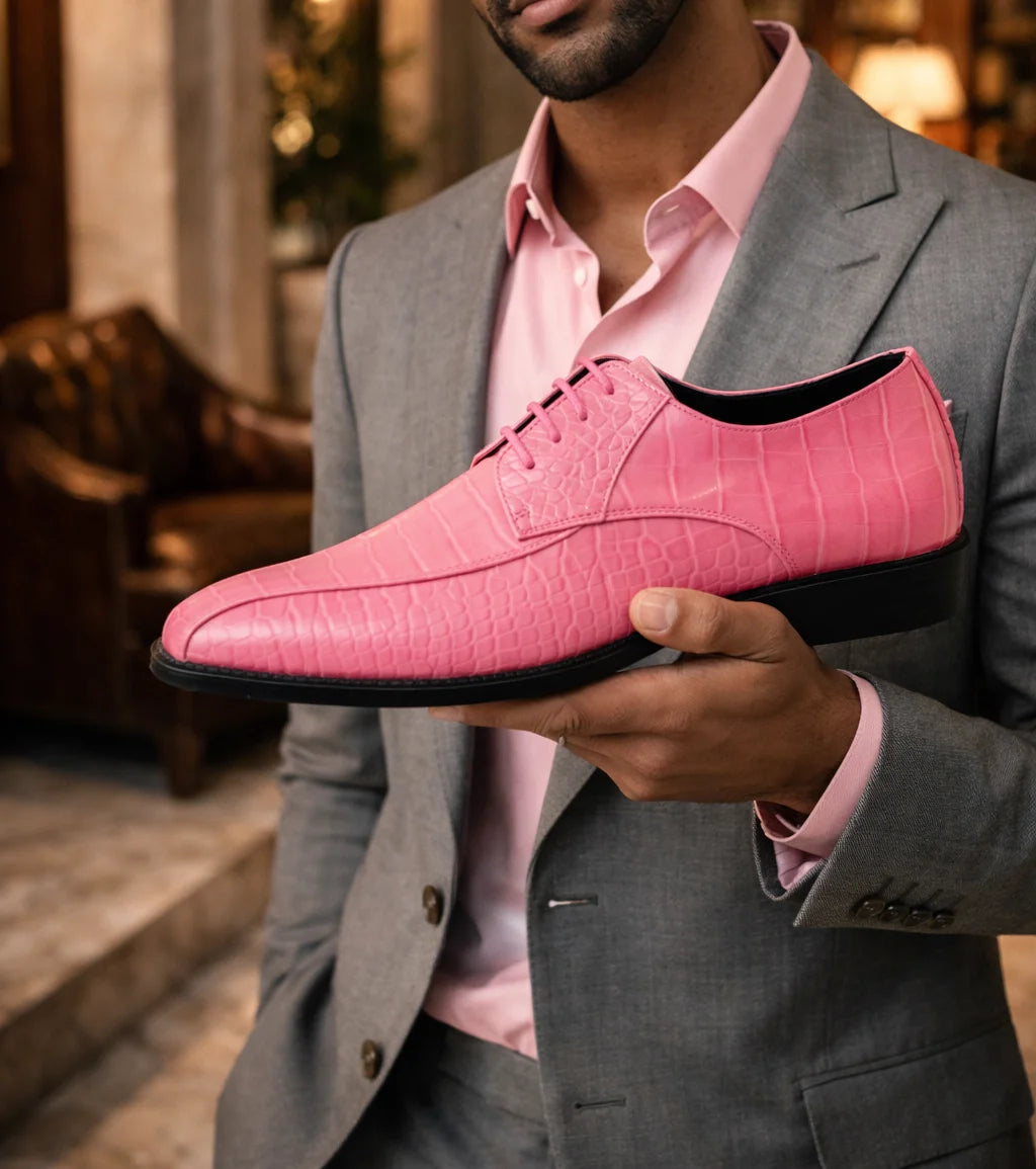 Discover the ultimate in luxury and style with Harvey crocodile dress shoes. Amali has brilliantly reinvented the classic oxford for the modern man, infusing it with confidence and refinement. These mens hot pink dress shoes are carefully crafted from high-quality synthetic materials, showcasing both durability and an opulent aesthetic. Experience the finest in crocodile dress shoes now!