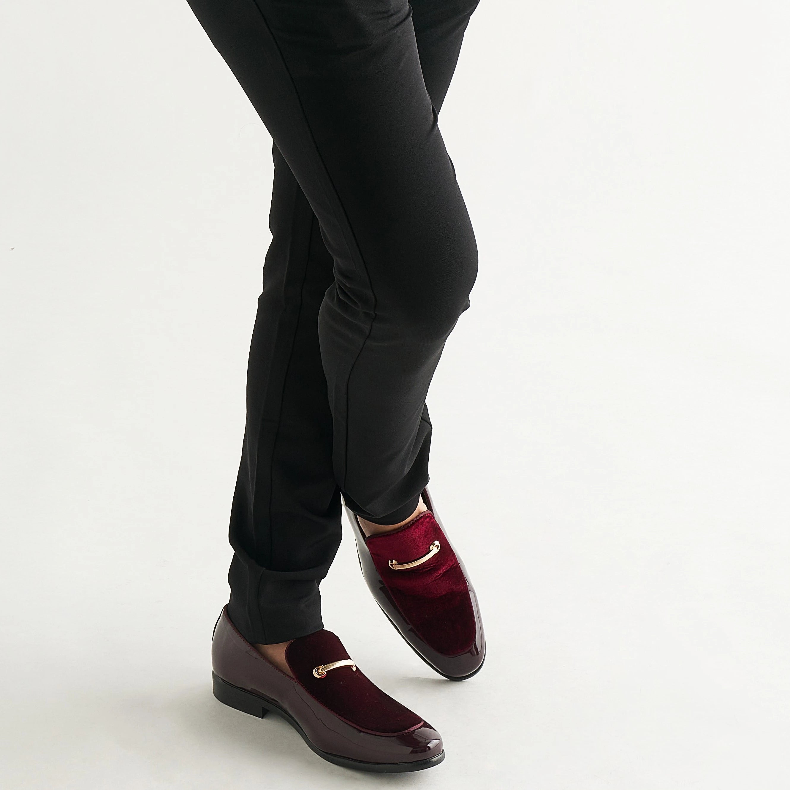 Embrace ultimate style and sophistication with Andrew burgundy dress loafers. Combining luxurious velvet and patent leather, these patent leather loafers will make you stand out in any crowd.