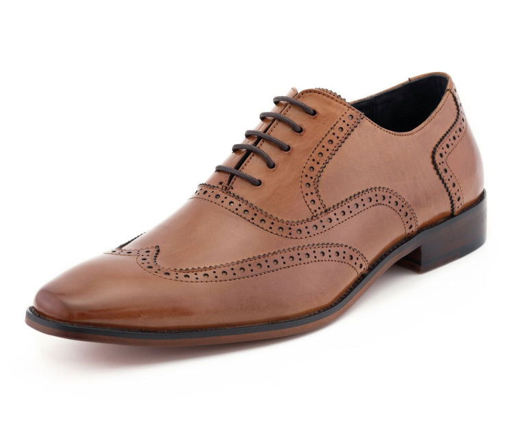 Crafted in genuine calf leather, these timeless men's dress shoes boast a sophisticated silhouette with laser-cut perforations, and are the ideal accompaniment to any suit in navy, grey, black, or the classic British tan hue. With a statement-making style reminiscent of classic brogues, they make an elegant addition to any wardrobe.