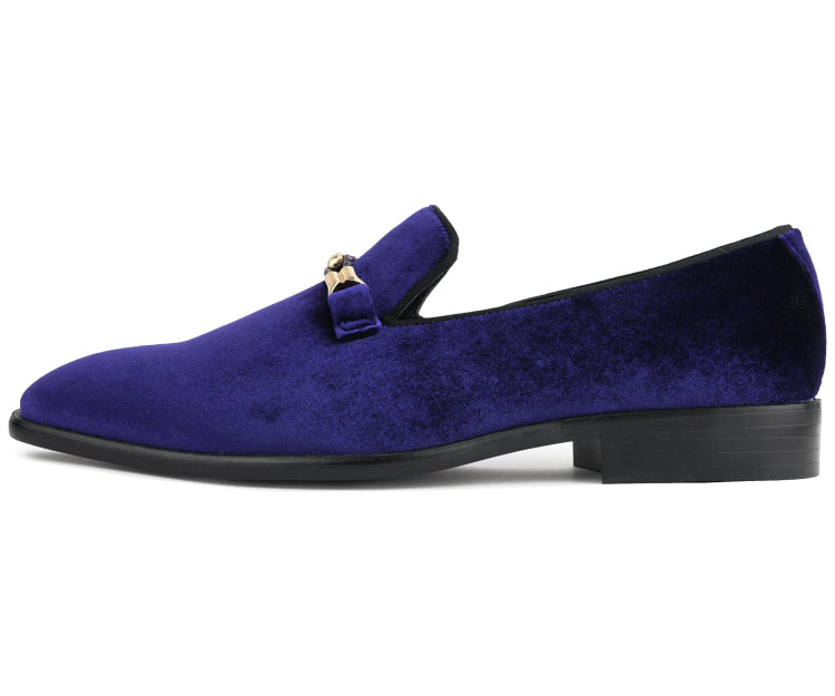 Step up your fashion game with Amali’s latest men's velvet slippers, the Aller. Choose from a variety of colors such as black, burgundy, navy, olive, purple, red, rose gold, royal blue, and teal - there's an option for every style-conscious gentleman. These purple velvet loafers feature a low-block heel for all-day comfort and a unique knitted metal bit for a standout look. With Just Men's Shoes in your wardrobe, you'll never have to wonder "What shoes should I wear?"
