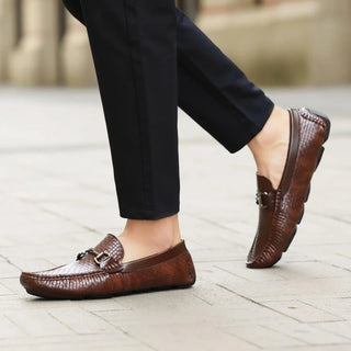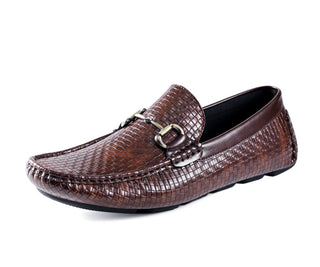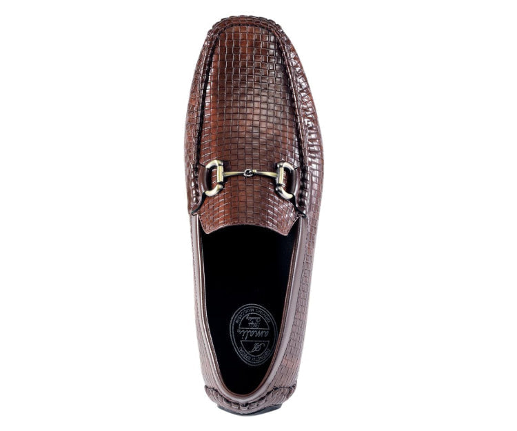 Meet Amerigo, Amali’s refined brown horsebit loafers that blend elegance with modern sophistication. Designed for the connoisseur who values both versatility and style, these mens woven loafers feature a classic moccasin silhouette crafted from premium synthetic leather. The woven texture adds a distinctive touch, setting these loafers apart as a standout piece in any wardrobe.