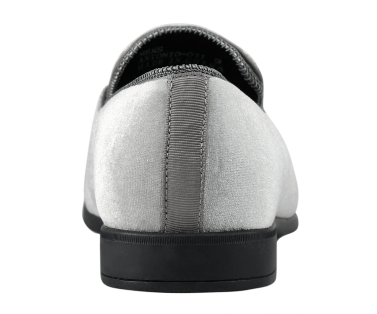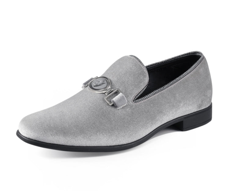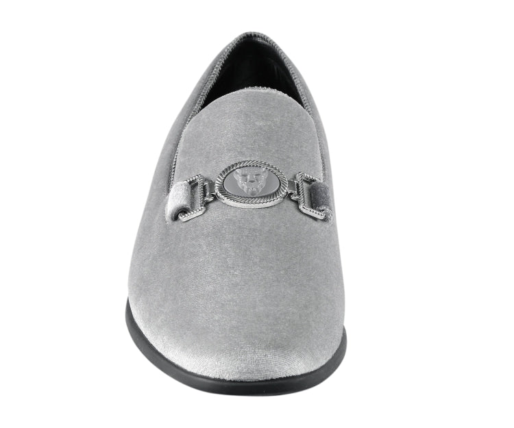 Experience sophistication with Antonio Grey Velvet Loafers by Amali Shoes - the ultimate statement piece for those who crave grey velvet loafers! These men's velvet dress shoes showcase a lavish velvet upper, adorned with a fierce lion ornament, for a timeless and daring look.