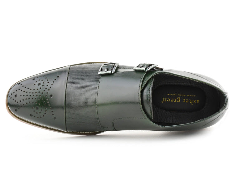 Asher Green Style AG1101, a time-honored style for men, these genuine calf leather dress shoes are both sophisticated and statement-making. The rich British tan-hued leather allows them to be paired effortlessly with any color of suit, from navy to grey to black. Laser-cut perforations add detail to this sleek silhouette in the style of classic brogues. The two-buckle closure not only lends a clean, streamlined feel to the shoes, but makes them quick and easy to get on and off.