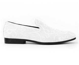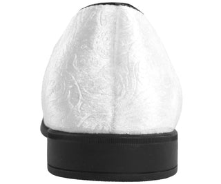 MENS SLIP ON SHOES WITH PAISLEY PATTERN- The Bryant are velvet mens loafers and slip on shoes. The embossed paisley pattern with satin band gives a classy and casual look. A modern revision to a classic shoe.