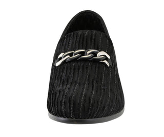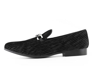 Elevate your wardrobe with the Cyrus Black Velvet Slip On Shoes by Amali, sophisticated black velvet slip on shoes designed for lasting elegance and comfort. Showcasing a textured velvet upper, polished chain bit accent, and a sleek, streamlined profile, these velvet loafers for men are ideal for formal events, special nights out, or elevated casual style.
