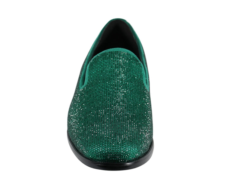 Embrace the Dazzle Green Rhinestone Loafers and make a statement with every step in these green rhinestone loafers. These sparkly mens loafers designed by Amali elevate any outfit with a touch of shimmering elegance and a bold attitude for every occasion!