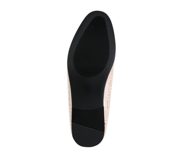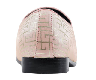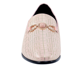 Make a powerful statement with Kazimar Light Pink Loafers by Amali Shoes, a flawless blend of opulence and contemporary style in light pink loafers. These loafers dress shoes for men are adorned with a complex geometric design and a sophisticated gold chain-link embellishment.