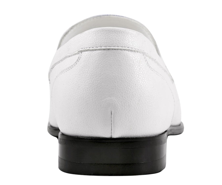 Embark on a journey to discover the unique qualities that make our mens white loafers stand out, all while enjoying the convenience of free expedited shipping for orders over $75 within the contiguous U.S., delivered straight to your doorstep. Contact us for any questions or help with our slip on loafer dress shoes. At Just Men's Shoes, we are dedicated to elevating your shopping experience. Take it a step further by joining our VIP Club for exclusive perks and deals. Complete your look with our metal bit loafers for men today!Embark on a fashion journey with Amali's Marco mens white loafers. Perfect for the daring individual, these slip on loafer dress shoes exude comfort and style. Featuring a stunning metal bit buckle and top-quality polyurethane leather material, our mens white loafers elevate any upscale event, from exclusive clubs to elegant weddings. Make the Marco slip on loafer dress shoes your go-to for special occasions and elevate your style game!