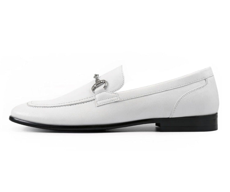 Embark on a fashion journey with Amali's Marco mens white loafers. Perfect for the daring individual, these slip on loafer dress shoes exude comfort and style. Featuring a stunning metal bit buckle and top-quality polyurethane leather material, our mens white loafers elevate any upscale event, from exclusive clubs to elegant weddings. Make the Marco slip on loafer dress shoes your go-to for special occasions and elevate your style game!