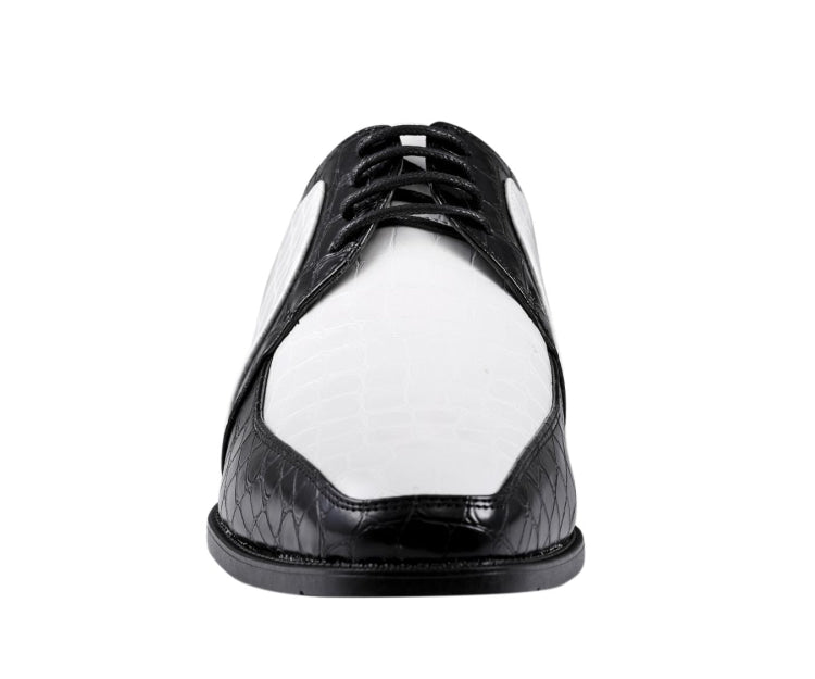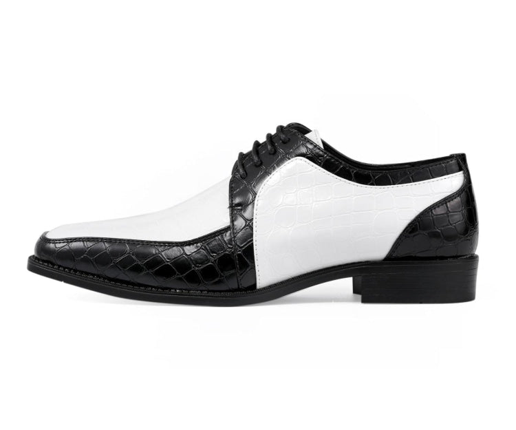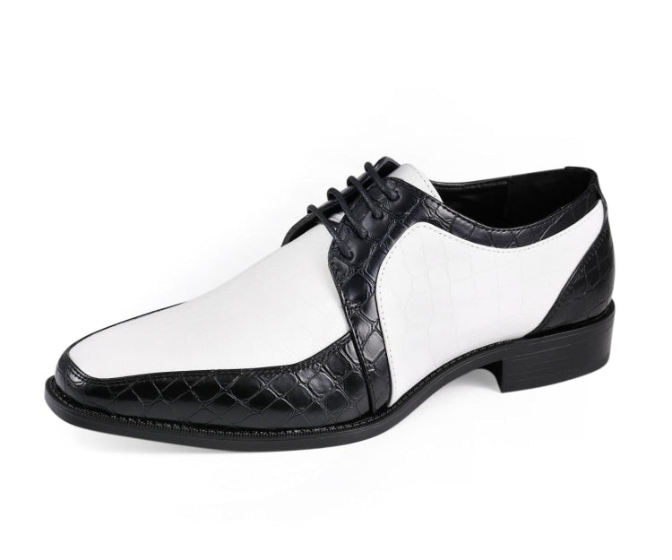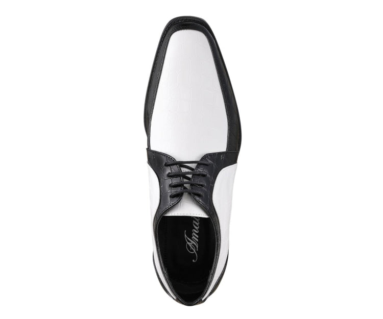 Experience the perfect blend of traditional elegance and exotic sophistication with Amali's newest creation - the two tone black and white dress shoes called Pierre. These derby dress shoes not only complete your outfit but exude exquisite refinement and original flair. Designed for the discerning gentleman who values both style and function, these two toned shoes offer unmatched comfort and a stunning look.