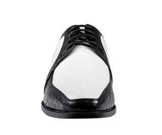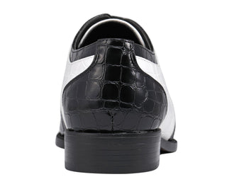 Indulge in sophistication with the Pierre two tone black and white dress shoes - a perfect fusion of timeless style and exquisite craftsmanship designed to exude confidence and elegance with each step. From Just Men's Shoes, these men's crocodile dress shoes are a must-have for a stylish and comfortable experience. Contact us for any questions or concerns. Our Loyalty Club rewards you with points for every purchase, and orders over $75 get free shipping within the contiguous US. Don't wait - elevate your wardrobe with a pair of black and white dress shoes today and embrace pure elegance.