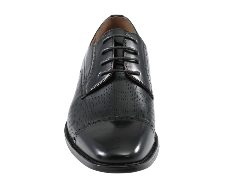 - DISCOVER PREMIUM COMFORT: Revel in the superior fit of these mens black cap toe shoes, made with premium synthetic leather for lasting wear and all-day ease.