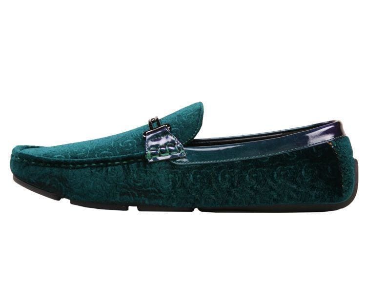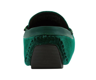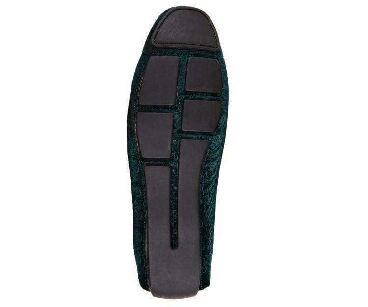 Indulge in the luxurious design of these green men's velvet dress shoes, adorned with a delicate flower-embossed material and metal bit ornament on a timeless driving shoe silhouette. Thoughtfully crafted, these velvet green moccasins are a sophisticated alternative to traditional dress shoes. Experience ultimate comfort and effortless style with these lavish driving shoes. Select your preferred hue, or treat yourself to a different pair for each day of the week.
