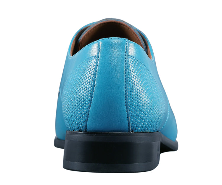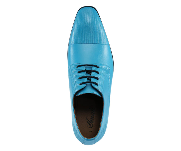 Transform your style with Russo Teal Oxford Shoes by Amali Shoes, the perfect teal oxford shoes for those looking to make a statement. These men's cap toe oxford shoes showcase a sleek textured design and high-quality synthetic leather, providing both fashion and strength.