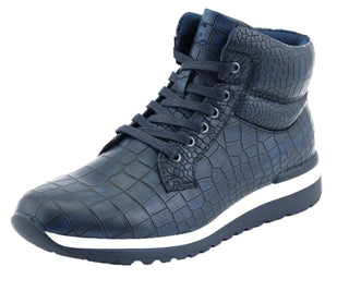 Make a confident statement with the Ryder Navy High Top Sneakers by Sio, bold navy high top sneakers designed for style, comfort, and lasting wear. Featuring a sleek croco-embossed upper and athletic-inspired sole, these mens high top sneakers deliver standout appeal for any look.