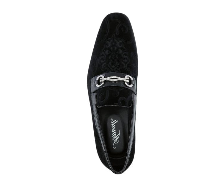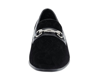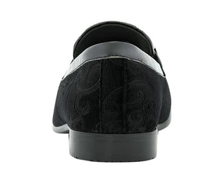 MENS SLIP ON SHOES WITH PAISLEY PATTERN- Experience the subtle sophistication of Throne Black. Our velvet mens loafers and slip on shoes feature an embossed paisley pattern and a satin band, creating a timelessly stylish look. Step up your style game with a daring modern revision of this classic shoe.