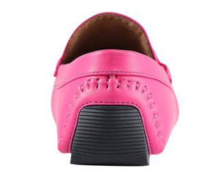 Experience the abundance of vibrant colors with these fashionable pink moccasins. They offer the perfect combination of style and comfort, with a sleek metal detail that adds a touch of elegance. These sophisticated men's casual moccasins are built to last and provide unbeatable comfort for any event. Elevate your wardrobe with the entire collection and make a statement wherever you go.