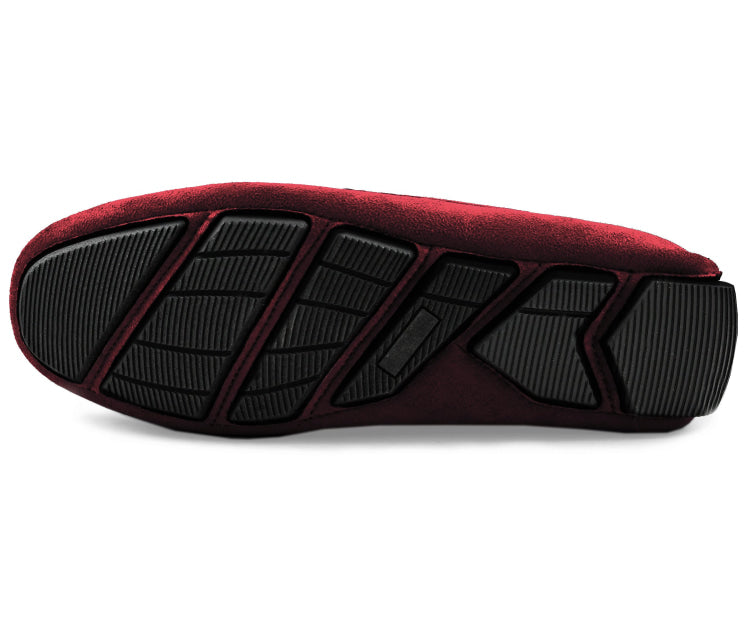 Enhance your style with Walken Burgundy, a pair of premium mens suede driving shoes that effortlessly elevate any look. These sophisticated burgundy suede loafers add a playful pop of color to your wardrobe, whether you're dressing up or keeping it casual. Pair them with jeans and a tee for a relaxed yet refined ensemble, or use them to add a touch of luxury to your professional attire. Experience the luxurious comfort and impeccable style of Walken Burgundy.