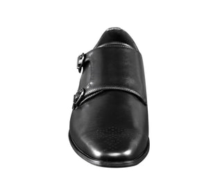 Make a powerful statement in black double monk strap shoes with the Willis Black Double Monk Strap Shoes by Amali, a sleek and versatile addition to any wardrobe. These double monk strap mens shoes showcase a classic finish, refined buckle closures, and intricate brogue accents.