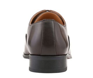 Step up your style with the Zyon Brown Oxford Shoes from Amali, the perfect brown oxford shoes for versatile and refined wear. These mens cap toe dress shoes feature a premium PU leather build, sleek cap toe, and a classic 4-point lace-up system for a polished look.